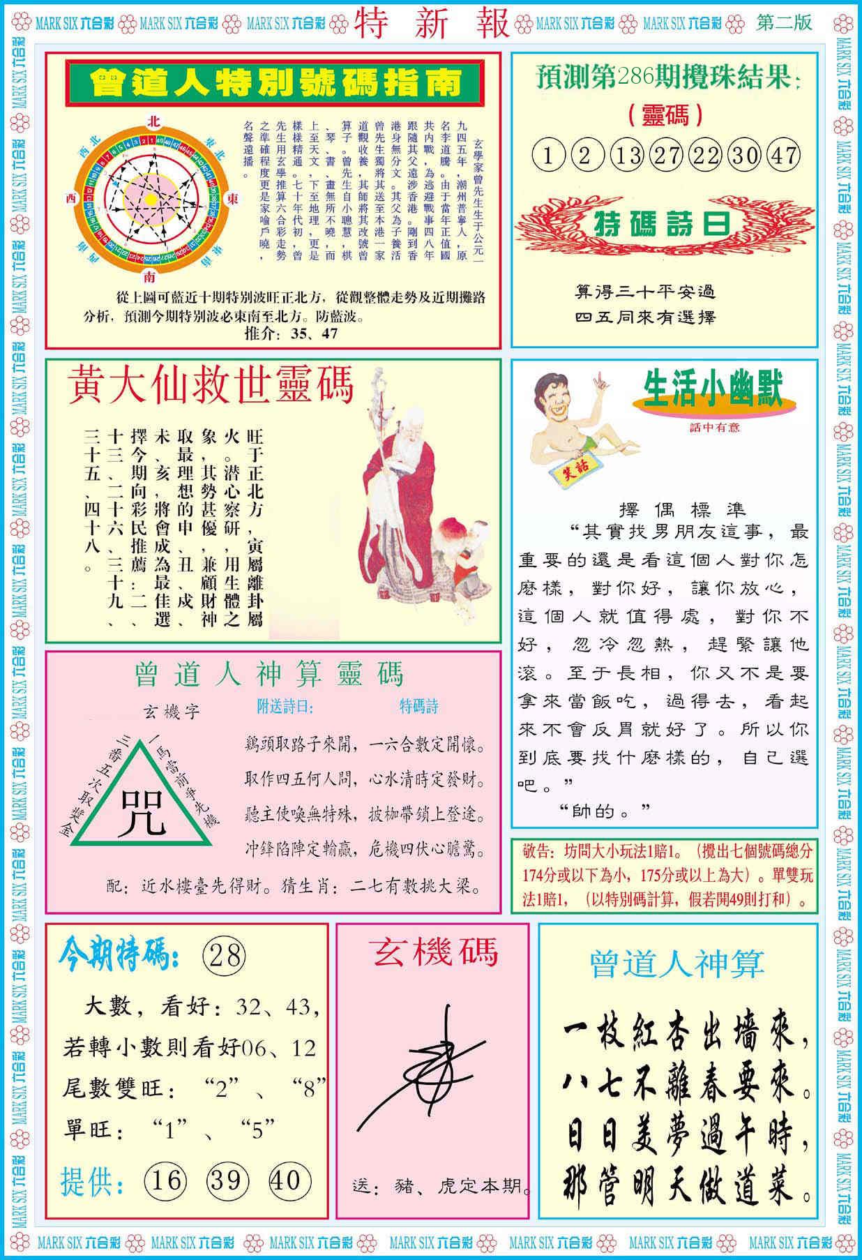 新香港六合彩 第 2025286 期 開獎結果