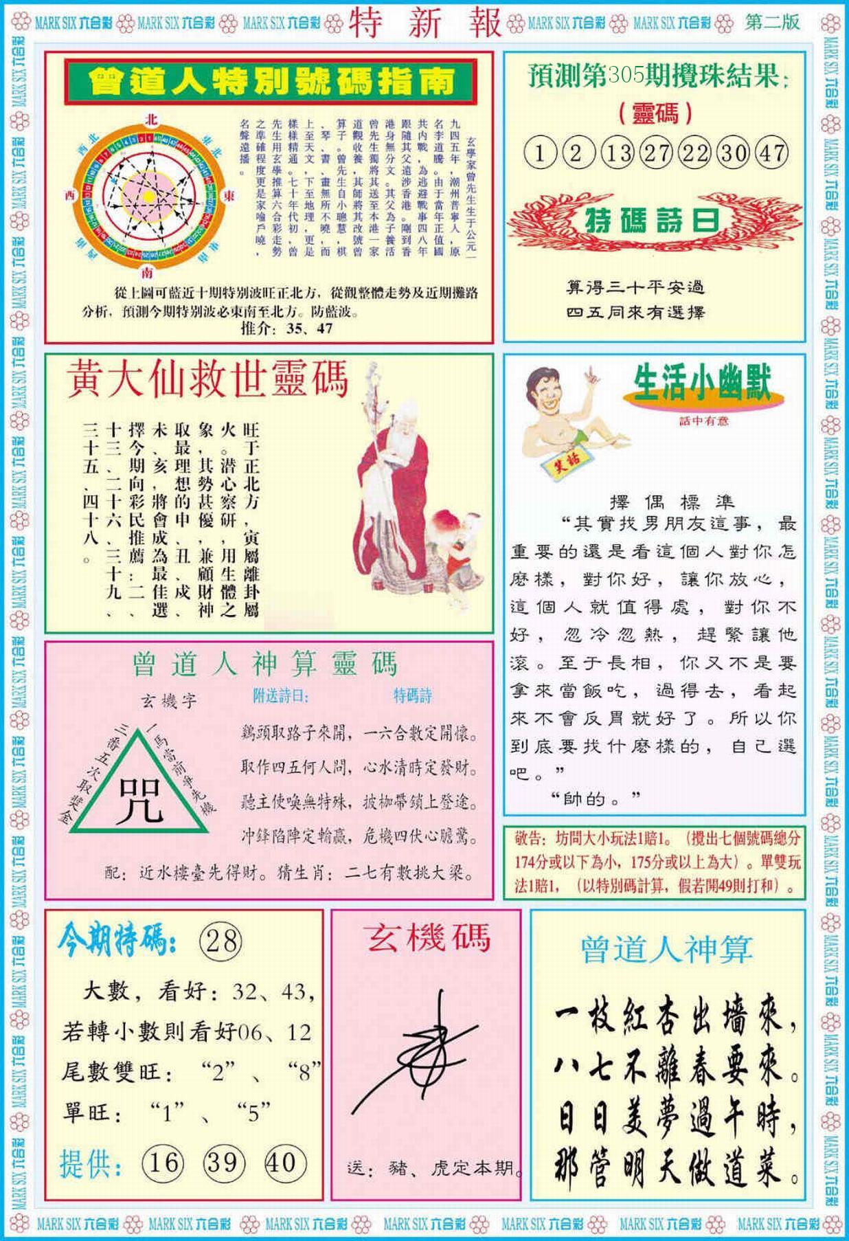 新香港六合彩 第 2024305 期 開獎結果
