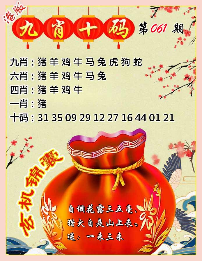 新香港六合彩 第 2025061 期 開獎結果