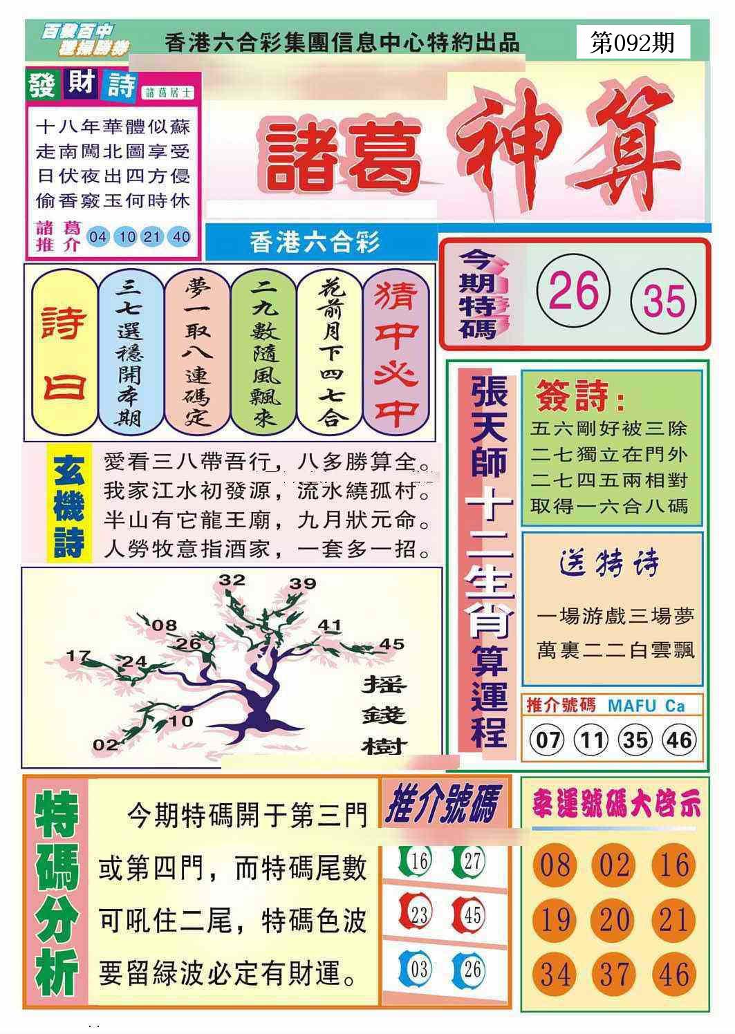 新香港六合彩 第 2025092 期 開獎結果