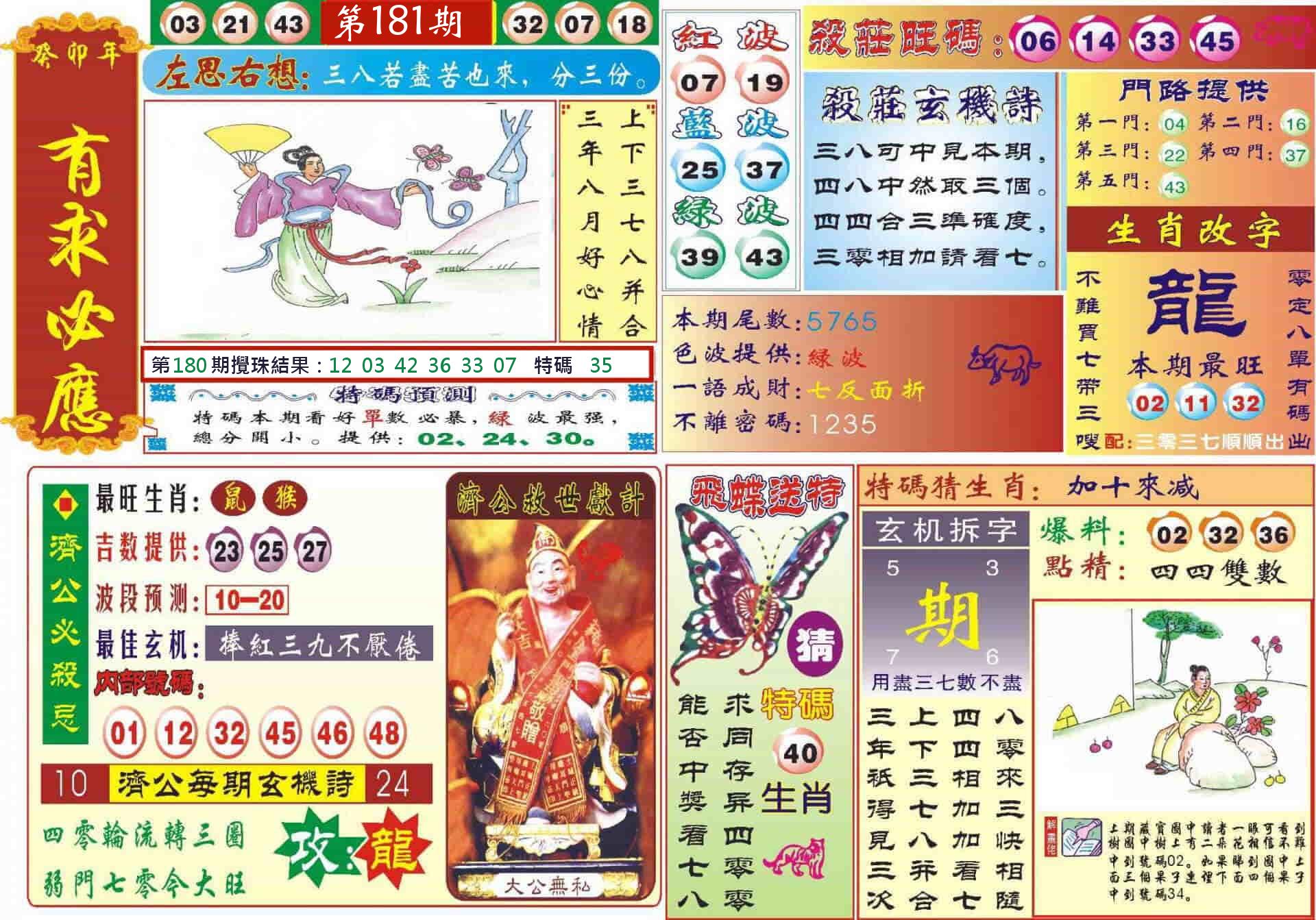 新香港六合彩 第 2025181 期 開獎結果