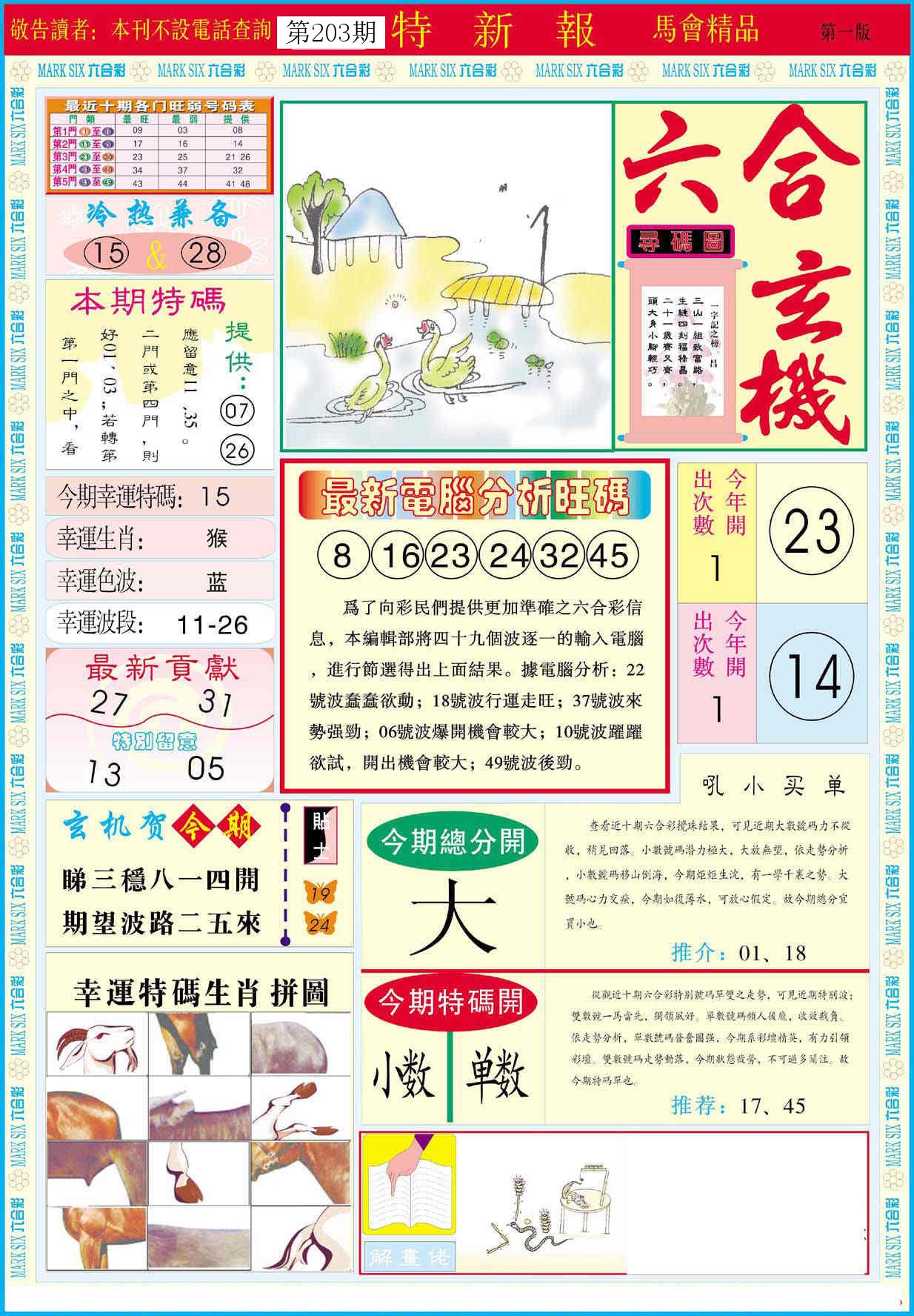 新香港六合彩 第 2025203 期 開獎結果