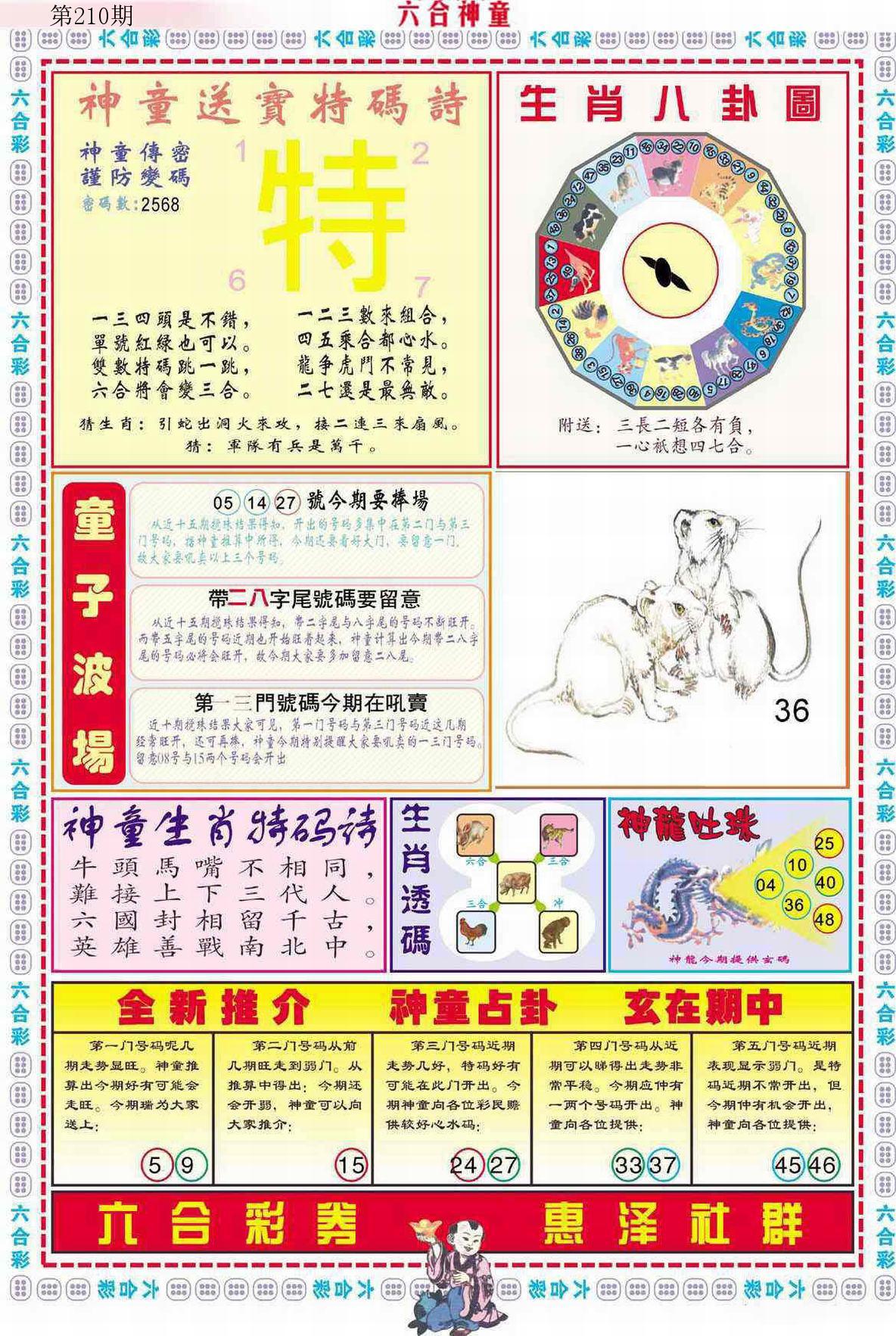 新香港六合彩 第 2025210 期 開獎結果