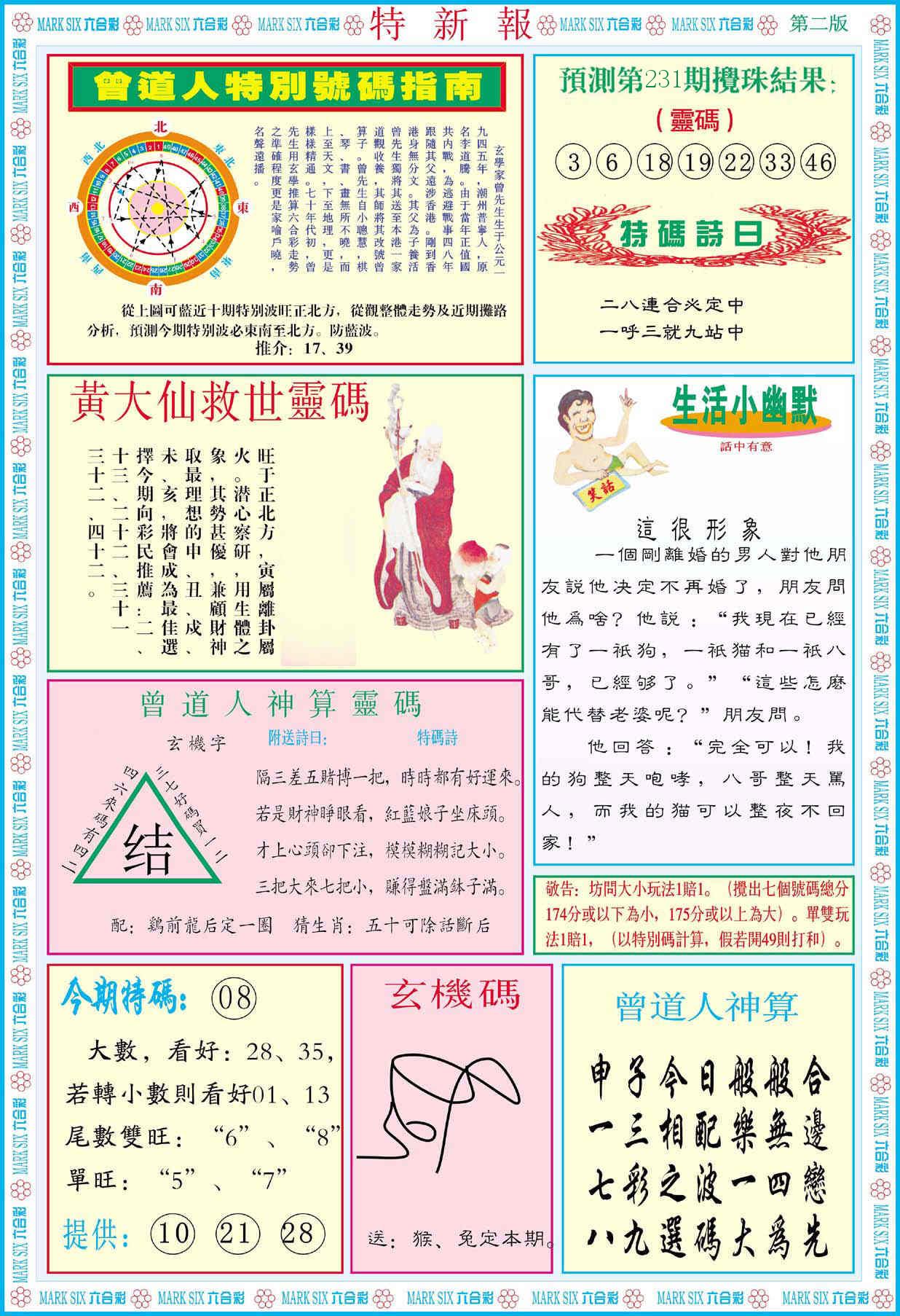 新香港六合彩 第 2025231 期 開獎結果