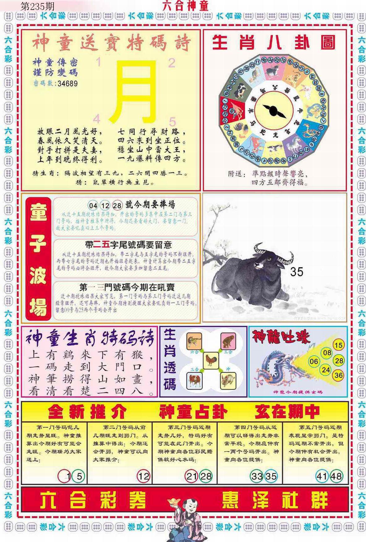 新香港六合彩 第 2025235 期 開獎結果