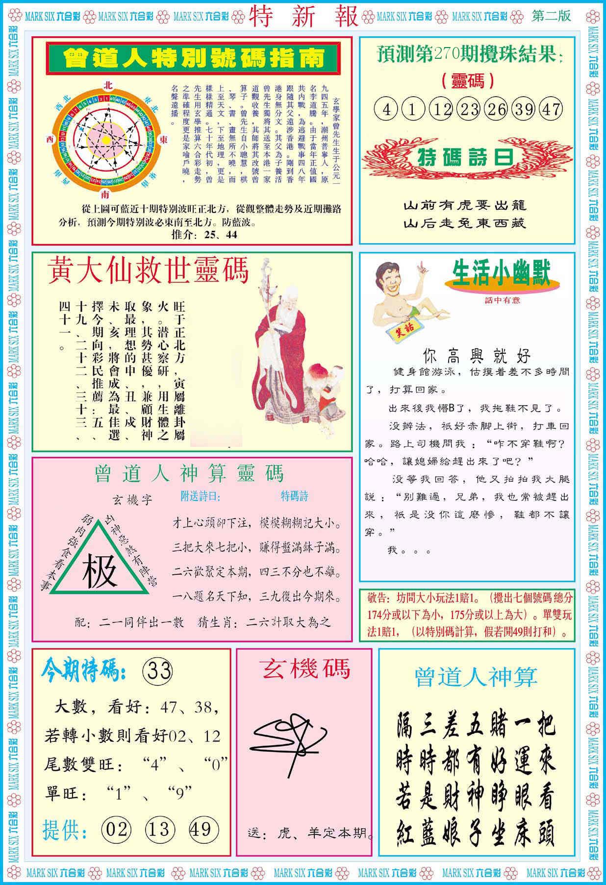 新香港六合彩 第 2025270 期 開獎結果