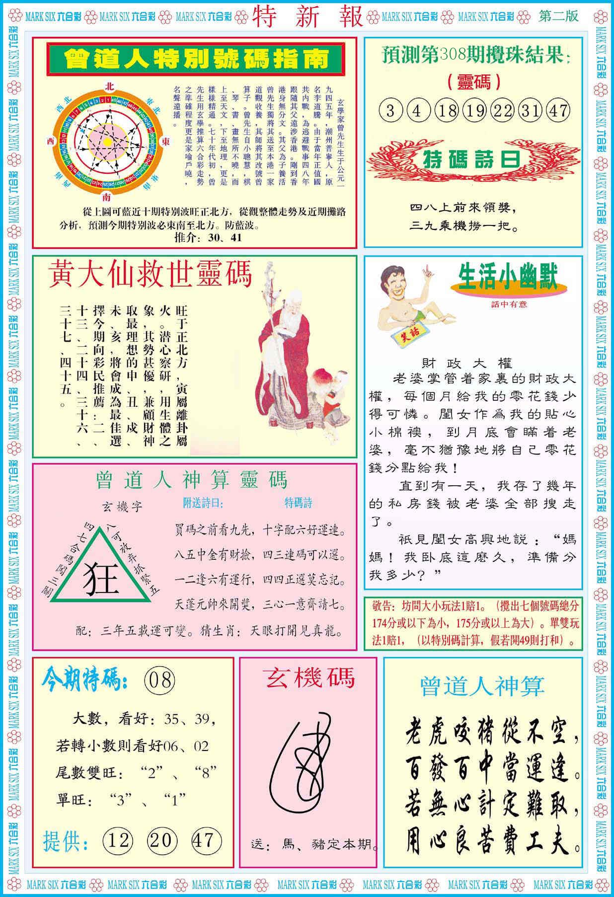 新香港六合彩 第 2025308 期 開獎結果