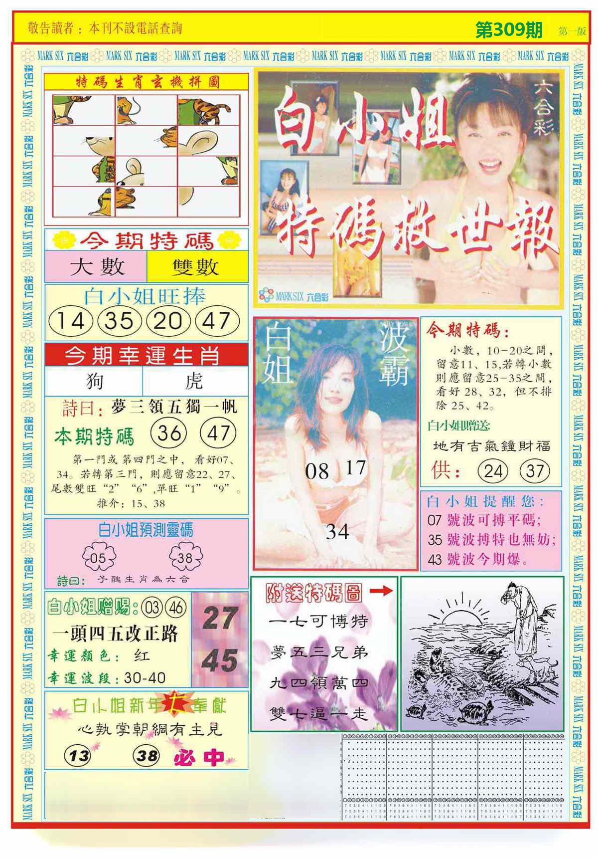 新香港六合彩 第 2025309 期 開獎結果