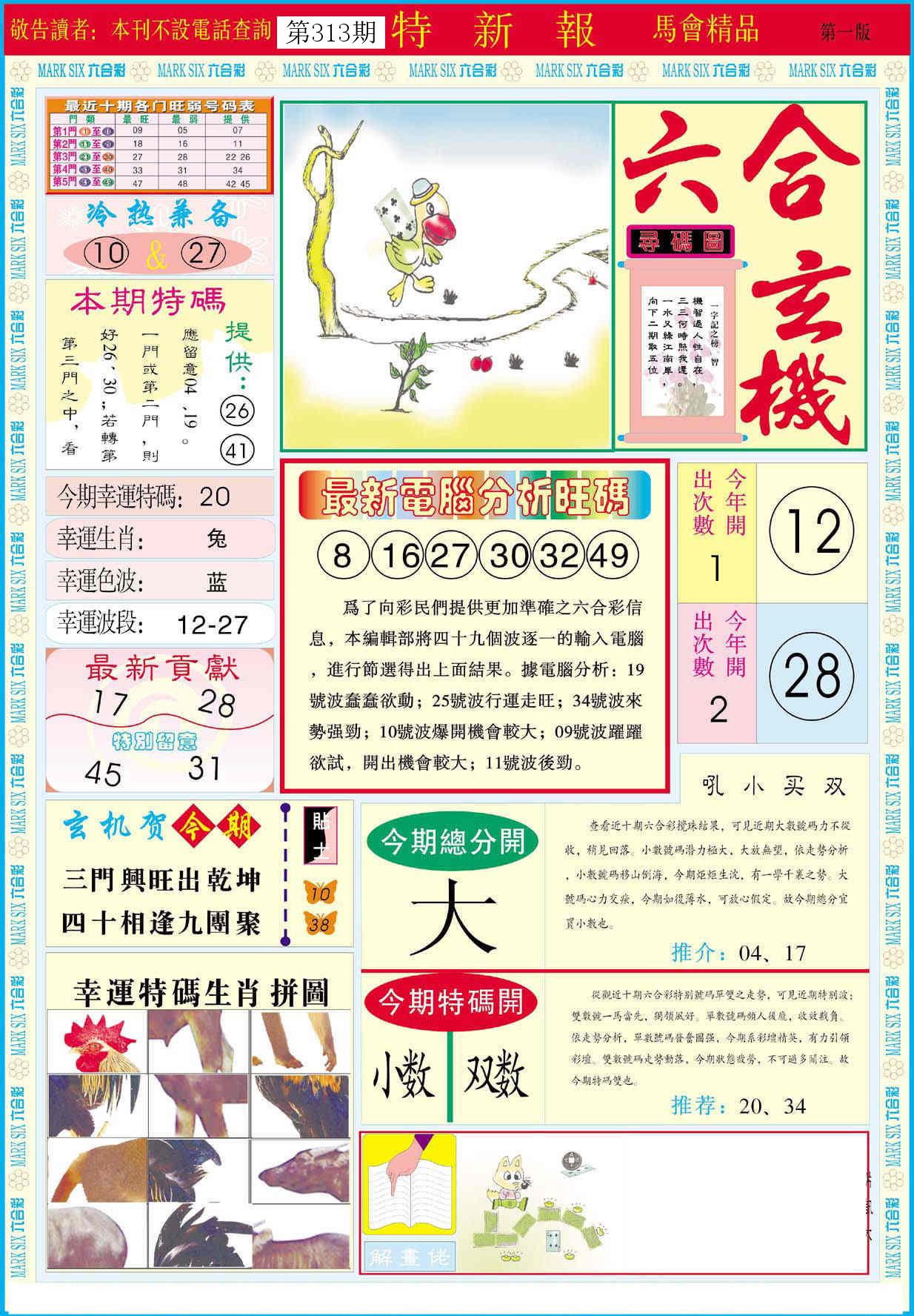 新香港六合彩 第 2025313 期 開獎結果